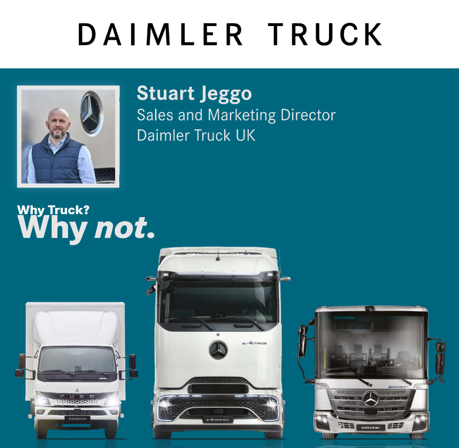 Stuart Jeggo, Sales & Marketing Director at Daimler Truck UK, shares his inspiring journey from car rentals to leading a national team in the trucking industry – a sector he describes as driven by people, purpose, and possibility. From his rural upbringing to championing innovation and inclusivity, Stuart highlights the collaborative spirit and transformative potential of trucking. His story is a testament to how diverse backgrounds and bold career moves can shape the future of an industry that’s constantly evolving. Read more about Stuart’s journey and his vision for a more inclusive, innovative trucking industry: